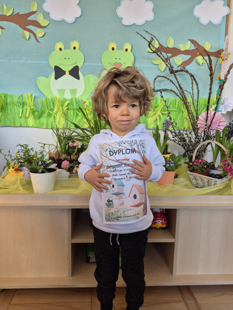 Miejskie Przedszkole Integracyjne nr 9 „Na Zielonym Wzgórzu” było organizatorem konkursu plastycznego pt. „Budki lęgowe dla ptaków”, w którym nasi podopieczni zajęli wysokie miejsca: Aleks zajął I miejsce w kategorii wiekowej 3-4 latki, a Nadia zajęła miejsce III również w tej samej kategorii.