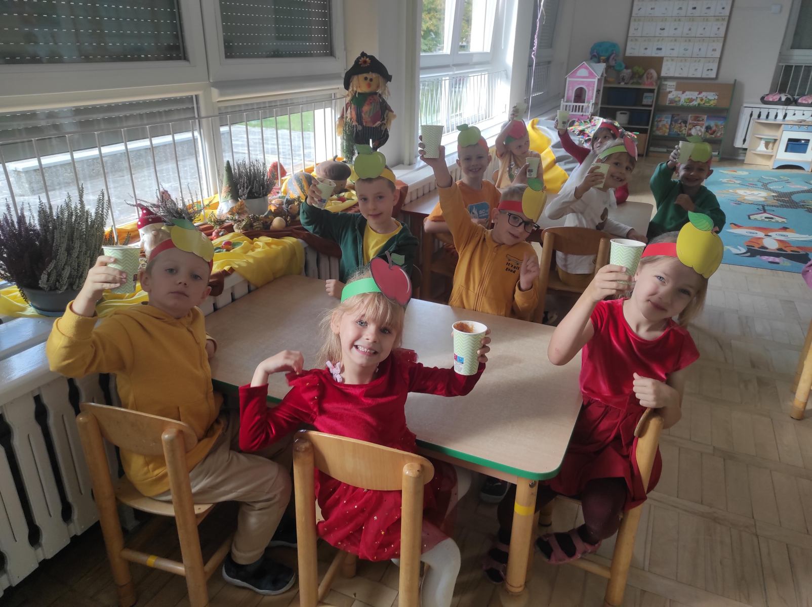 26 września w naszym przedszkolu odbył się Dzień Jabłka. To wydarzenie, które poświęcone było temu zdrowemu i smacznemu owocowi. Dzieci miały okazję poznać różne odmiany jabłek, dowiedzieć się, skąd pochodzą, jakie mają wartości odżywcze i dlaczego warto je jeść każdego dnia. Podczas zajęć nie zabrakło wspólnego czytania wierszyków i zagadek o jabłkach, prac plastycznych, zabaw ruchowych, a także degustacji jabłkowych przysmaków. Były świeże jabłka, soki, szarlotki i inne pyszności, które przygotowali nasi niezastąpieni rodzice. Z całego serca dziękujemy Rodzicom za zaangażowanie, pomoc w organizacji Dnia Jabłka oraz przygotowanie smakołyków. Dzięki Wam ten dzień był nie tylko pełen radości i dobrej zabawy, ale także stał się doskonałą okazją do promowania zdrowego stylu życia wśród dzieci.