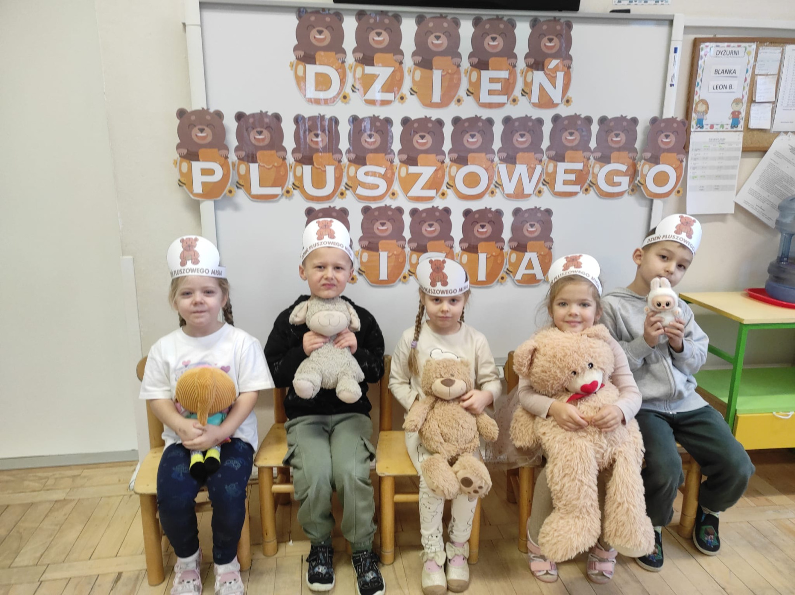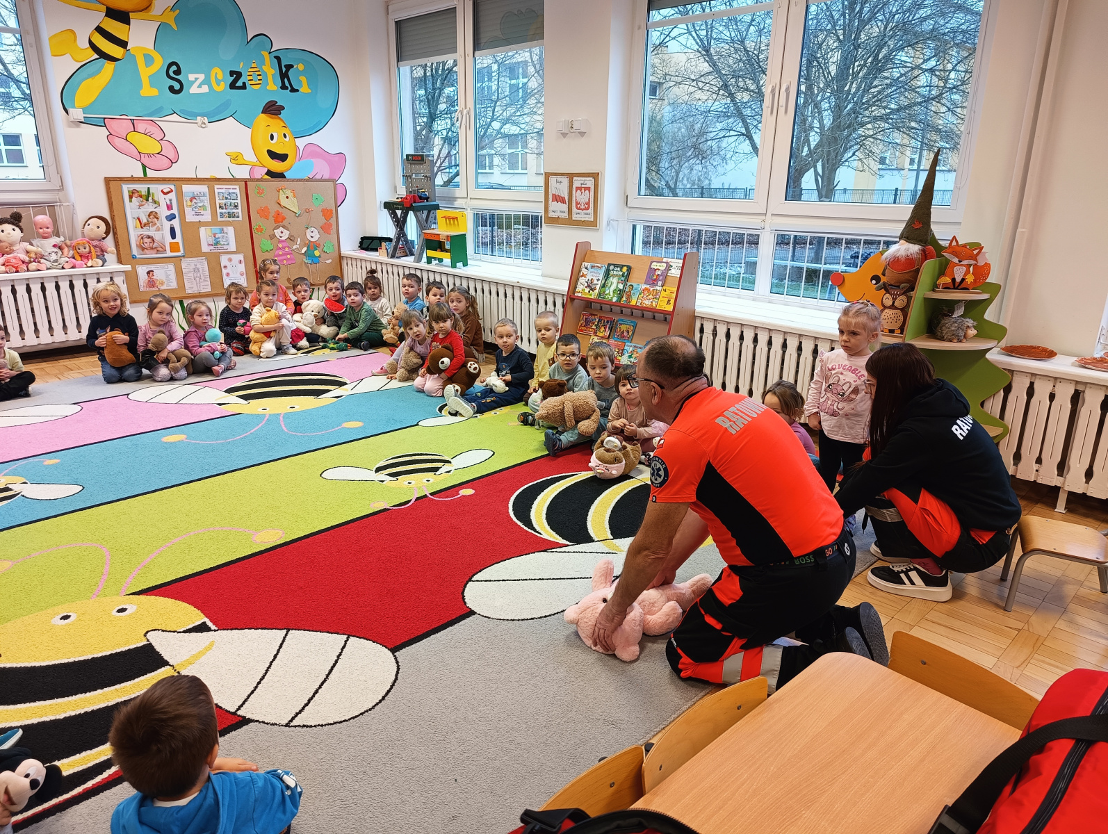 W naszym przedszkolu dnia 25 listopada uroczyście obchodziliśmy Dzień Pluszowego Misia. To święto pełne uśmiechu, ciepła i dobrej zabawy. Tego dnia każde dziecko mogło przynieść swojego ukochanego misia, który towarzyszył mu podczas wspólnych aktywności. Podczas zajęć dzieci poznały historię pluszowego misia, brały udział w zabawach ruchowych, konkursach oraz wspólnym śpiewaniu piosenek o misiach. Nie zabrakło również zajęć plastycznych, podczas których powstały wyjątkowe, misiowe prace. Wyjątkowym punktem dnia była wizyta ratownika medycznego, który przeprowadził dla dzieci krótki, dostosowany do ich wieku instruktaż pierwszej pomocy. Z pomocą dużego pluszowego misia pokazał, jak prawidłowo reagować w sytuacjach zagrożenia oraz jak wezwać pomoc. Dzieci z ogromnym zainteresowaniem uczestniczyły w pokazie i chętnie zadawały pytania.
