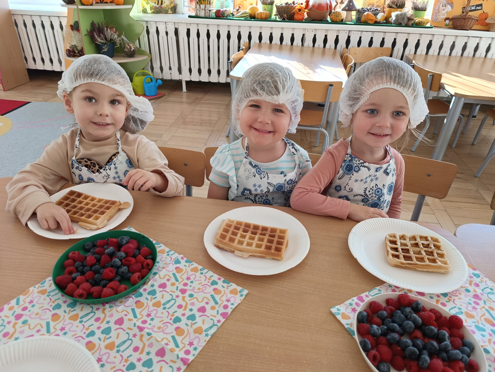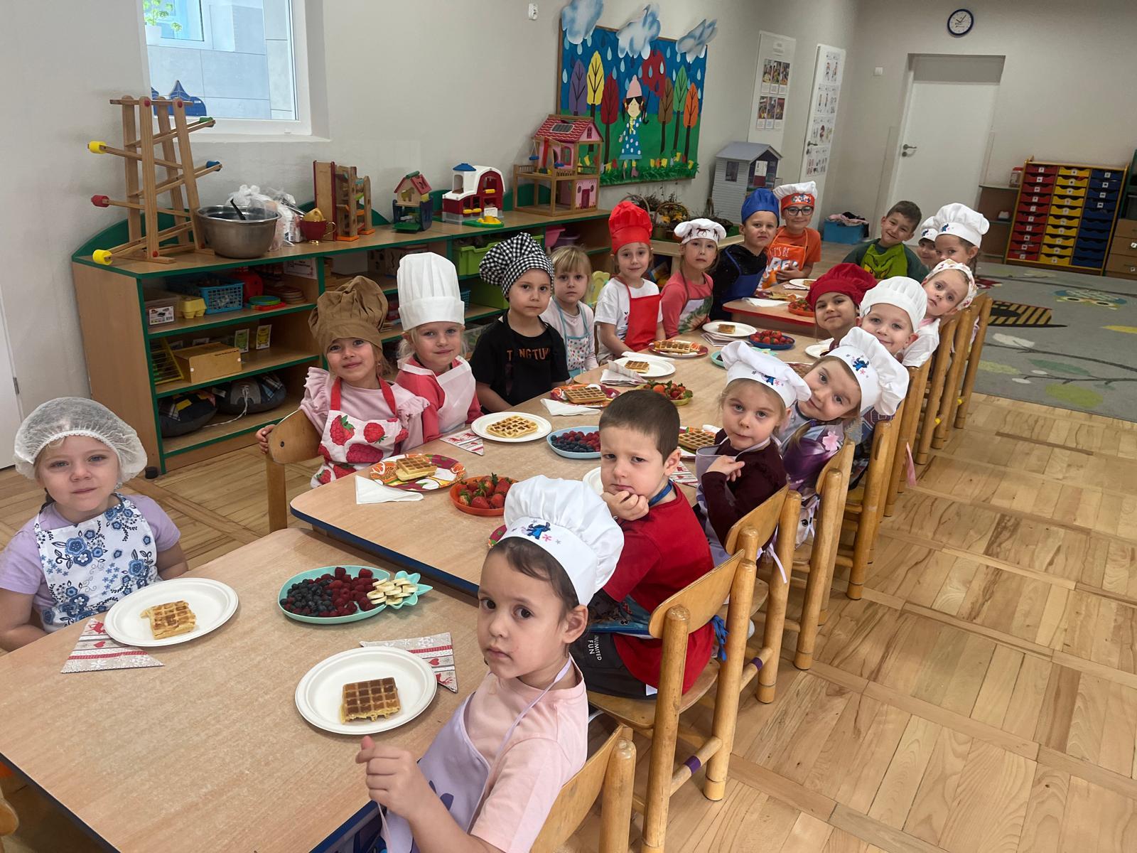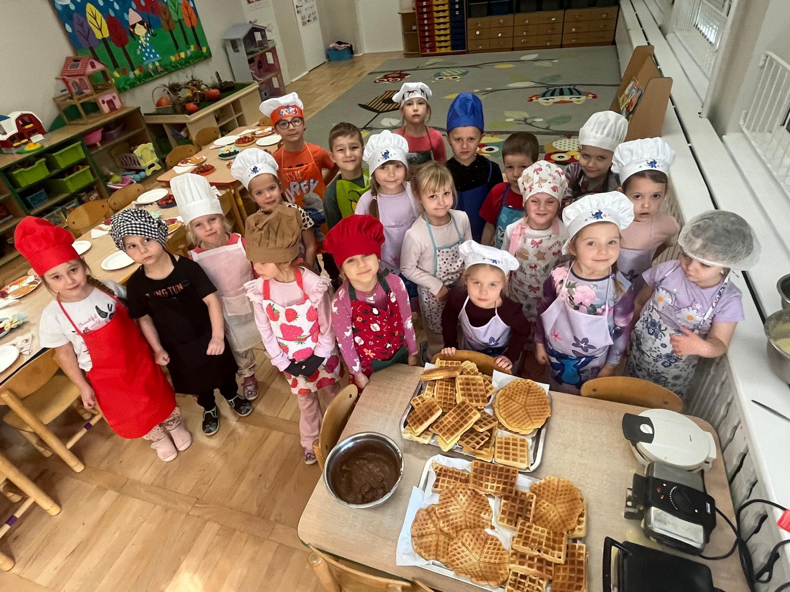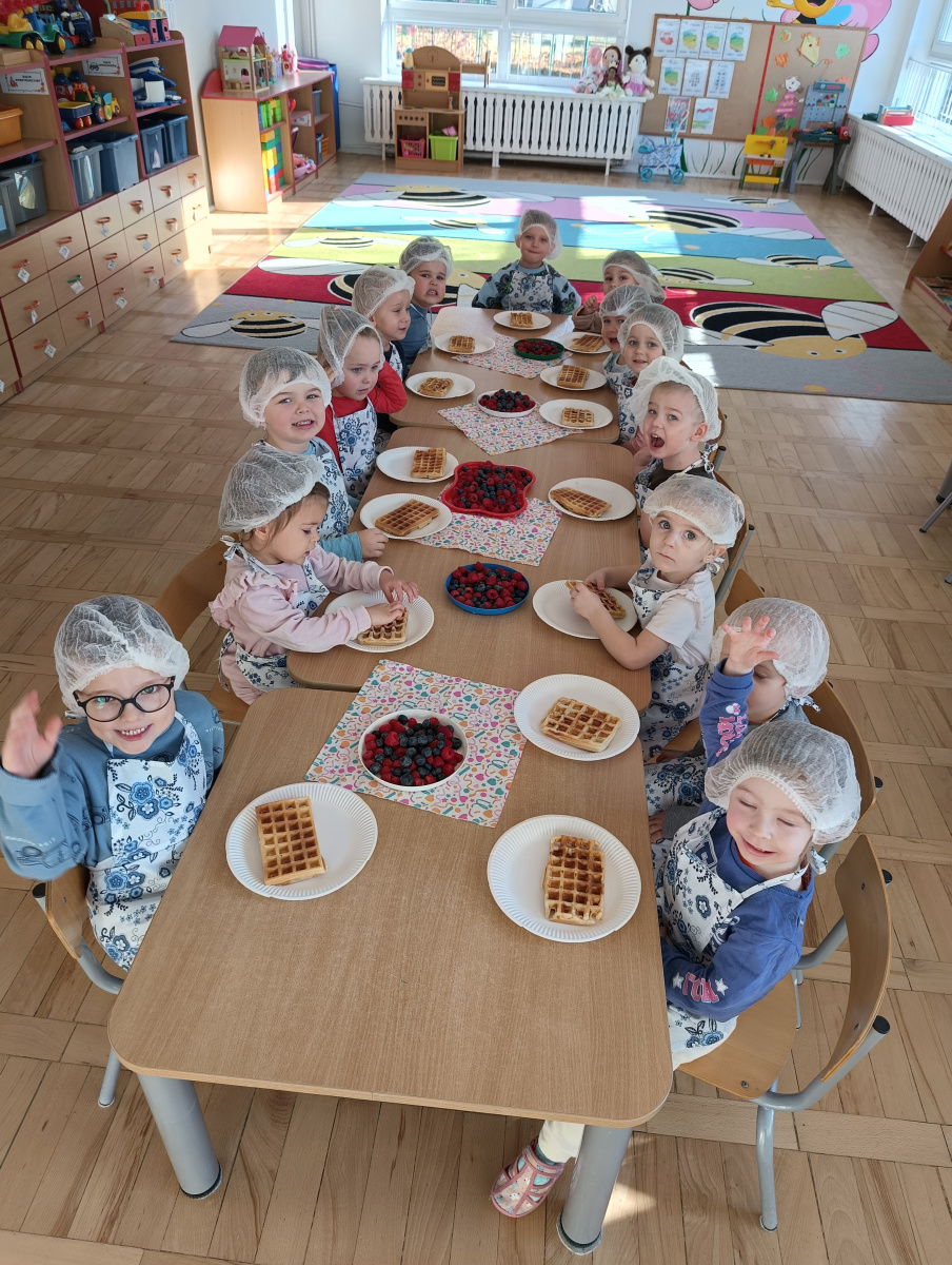 6 listopada obchodziliśmy w naszym przedszkolu Europejski Dzień Zdrowego Jedzenia i Gotowania. To wyjątkowe święto przypomina nam, jak ważne jest zdrowe odżywianie, wybieranie naturalnych produktów i kształtowanie dobrych nawyków już od najmłodszych lat. Z tej okazji nasze przedszkolaki wzięły udział w warsztatach kulinarnych, podczas których przygotowały coś naprawdę wyjątkowego, zdrową „nutellę” z awokado, miodu i kakao oraz gofry wykonane z mąki pełnoziarnistej! Dzieci z wielkim zaangażowaniem odmierzały składniki, mieszały i próbowały swojego pysznego, zdrowego kremu. Okazało się, że zdrowe może być nie tylko pożywne, ale też bardzo smaczne. Podczas zajęć rozmawialiśmy również o tym, dlaczego warto jeść warzywa i owoce, unikać nadmiaru cukru oraz jak codzienne wybory wpływają na nasze zdrowie i samopoczucie. Był to dzień pełen radości, smaków i nowych doświadczeń. Cieszymy się, że nasze przedszkolaki tak chętnie uczestniczą w działaniach promujących zdrowy styl życia.