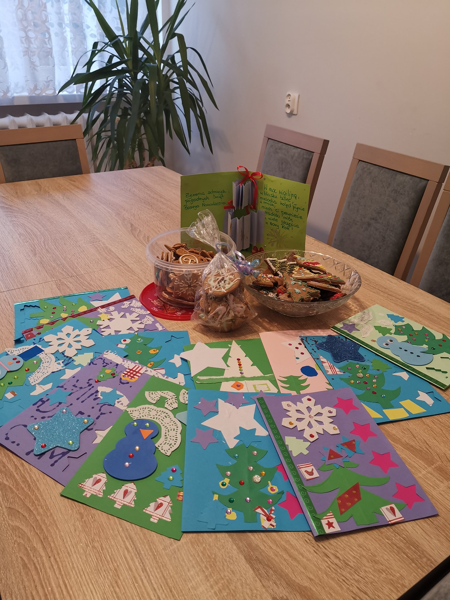W ramach akcji „Razem na Święta”, której inicjatorem jest Ministerstwo Edukacji Narodowej nasze przedszkolaki przygotowały dla podopiecznych DPS nr 1 i DPS nr 2 w Gorzowie Wielkopolskim niespodzianki – pierniczki, kartki świąteczne oraz ręcznie wykonane ozdoby. Naszym celem było przede wszystkim niesienie pomocy innym, budowanie wspólnoty i więzi międzypokoleniowych oraz sprawienie radości potrzebującym w dobie pandemii.