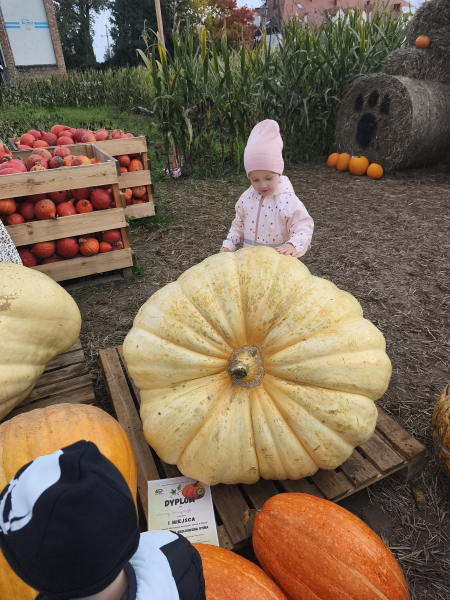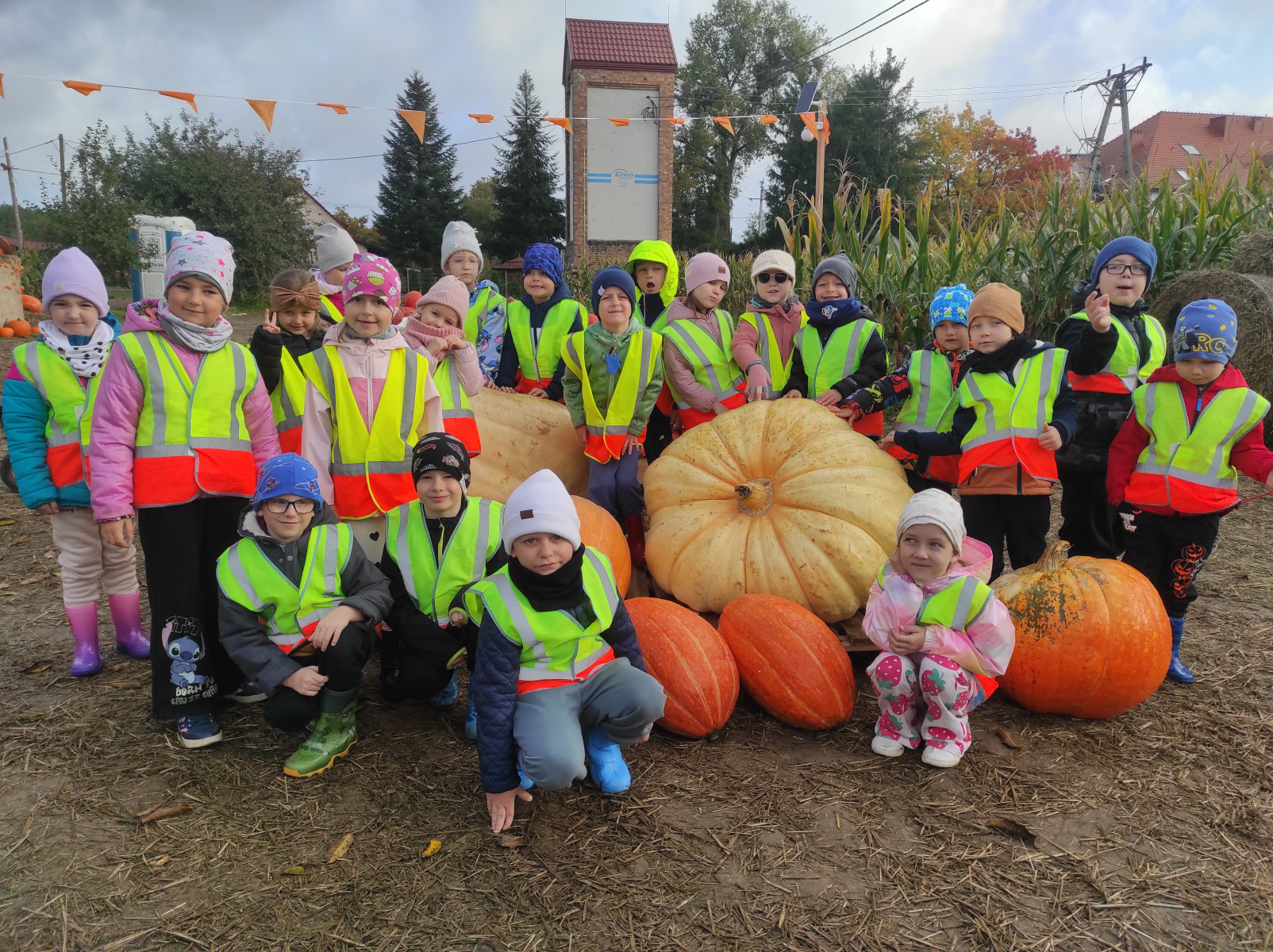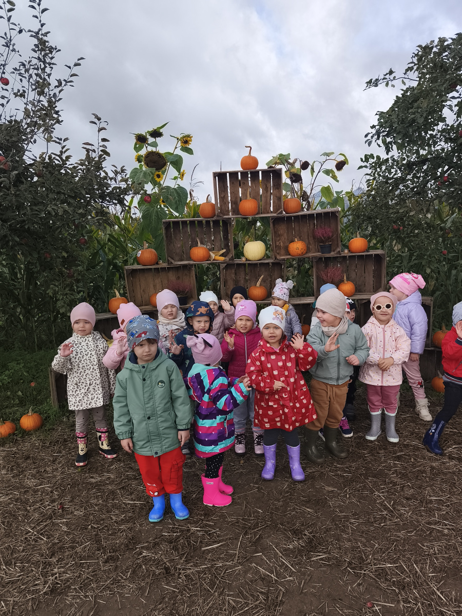 Dzieci z grupy ,,Stokrotki” oraz ,, Tygryski” wybrały się na na pole dyniowe. Celem wizyty było nie tylko poznanie cyklu wzrostu tej wartościowej rośliny, ale również promowanie zdrowego stylu życia poprzez bezpośredni kontakt z naturą i edukacją żywieniową. Dzieci miały okazję zobaczyć różne odmiany dyni, od malutkich ozdobnych po ogromne jadalne, spacerować po polu, ucząc się szacunku do przyrody i pracy rolników, brać udział w kreatywnych zabawach i warsztatach z wykorzystaniem dyni oraz dowiedzieć się, dlaczego dynia jest skarbnicą witamin i jak można ją smacznie i zdrowo przygotować. To był doskonały czas spędzony na świeżym powietrzu, oraz doskonała okazja do budowania świadomości na temat roli warzyw w codziennej diecie, a także rozwijania zainteresowań przyrodniczych i kulinarnych u dzieci.