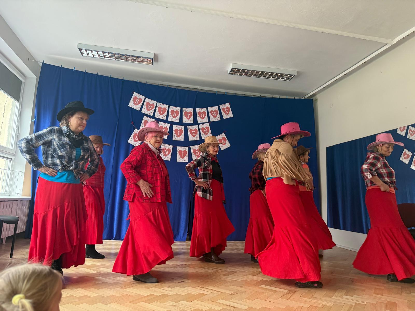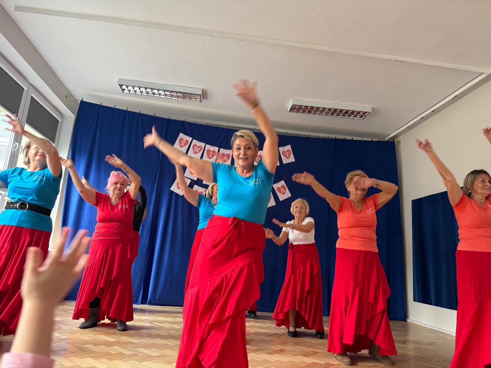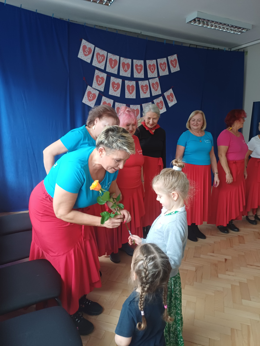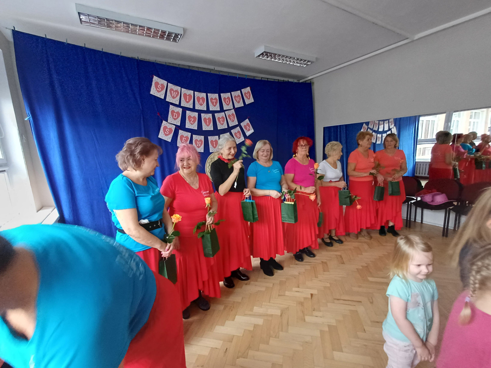 14.11.25r., w naszym przedszkolu obchodziliśmy Światowy Dzień Seniora. Z tej okazji zaprosiliśmy grupę Seniorita ze szkołę salsy Sorpresa. Naszych gości przywitały swoimi występami kółko taneczne ,,Promyczki” oraz grupa Kubusie. Niesamowite seniorki wspólnie ze swoją trenerką zaprezentowały dwa tańce. Po wręczeniu upominków przygotowanych przez kółko artystyczne oraz dzieci z grupy Kubusie, pożegnaliśmy się wspólną zabawą taneczną. Ten dzień pełen braw i uśmiechu pokazał, jak wspaniała jest wymiana międzypokoleniowa. To cudowna lekcja zrozumienia, integracji społecznej i przełamywania stereotypów, którą z pewnością powtórzymy.