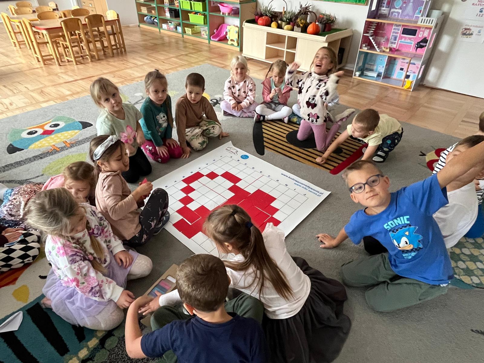W dniach 29 września – 3 października 2025 r., nasze przedszkole brało udział w ogólnopolskiej inicjatywie Ministerstwa Edukacji Narodowej ,,Tydzień o budowaniu relacji”. Głównym celem było wzmacnianie relacji, rozwijanie empatii i kształtowanie bezpiecznego środowiska już od najmłodszych lat. Przedszkole jest miejscem, gdzie dzieci uczą się rozpoznawania emocji, budowania relacji i rozwiązywania konfliktów poprzez zabawę. Wczesne kształtowanie kompetencji społecznych i emocjonalnych chroni przed późniejszymi zagrożeniami. To tu, w atmosferze akceptacji i bezpieczeństwa, można wzmacniać otwartość, empatię i współpracę. Przez cały tydzień były organizowane zajęcia dotyczące emocji, relacji społecznych, akceptacji oraz integracji grup przedszkolnych. Naszym najważniejszym działaniem było stworzenia ,,Pasa dobrych uczynków”. W akcję włączyła się cała społeczność przedszkolna (dzieci, rodzice, rodzeństwo oraz pracownicy), a pas dobrych uczynków mierzył aż 18 metrów.